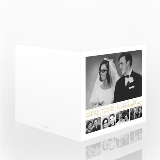 Mot et tillegg kan du velge et av våre designpapir, samt trykk av navn i kortet og navn og adresser på konvolutten.