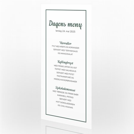 Menyen kan også brukes til bordkort, og her er plass til både en liten sang og noen bilder om ønskelig
